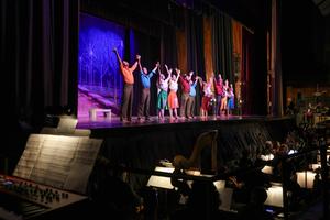 (250427) -- SAN SALVADOR, 27 abril, 2025 (Xinhua) -- Imagen del 26 de abril de 2025 de bailarines saludando al público durante la celebración del Día Internacional de la Danza en el Teatro Presidente, en el departamento de San Salvador, capital de El Salvador. (Xinhua/Alexander Peña) (ap) (rtg) (da)