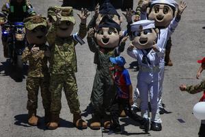 (250801) -- SAN SALVADOR, 1 agosto, 2025 (Xinhua) -- Personas participan en un desfile durante la inauguración de la temporada vacacional de las Fiestas Agostinas, en el departamento de San Salvador, El Salvador, el 1 de agosto de 2025. (Xinhua/Alexander Peña) (ap) (oa) (ra) (ce)