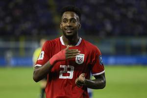 (251011) -- SAN SALVADOR, 11 octubre, 2025 (Xinhua) -- Imagen del 10 de octubre de 2025 del jugador Michael Murillo, de Panamá, festejando una anotación durante el partido ante El Salvador correspondiente a las Eliminatorias para el Mundial de Estados Unidos, México y Canadá 2026, celebrado en el Estadio Cuscatlán, en el departamento de San Salvador, El Salvador. (Xinhua/Alexander Peña) (ap) (oa) (da)