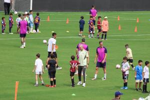 (251107) -- SAN SALVADOR, 7 noviembre , 2025 (Xinhua) -- El jugador, Pepe (4-i-frente), participa en una clínica deportiva con niños durante un entrenamiento previo al partido de leyendas entre FC Barcelona y Real Madrid, en el Estadio Nacional Jorge "Mágico" González, en el departamento de San Salvador, capital de El Salvador, el 7 de noviembre de 2025. (Xinhua/Alexander Peña) (ap) (oa) (ra) (ce)