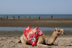 (250611) -- MASSAWA, 11 junio, 2025 (Xinhua) -- Imagen del 7 de junio de 2025 de un camello sentado cerca del mar, en Massawa, Eritrea. Massawa, ubicada a orillas del mar Rojo, es una importante ciudad portuaria de Eritrea. (Xinhua/Liu Fangqiang) (jg) (da) (ce)