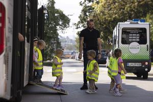 (250923) -- LIUBLIANA, 23 septiembre, 2025 (Xinhua) -- Imagen del 22 de septiembre de 2025 de niños aprendiendo lo que necesitan saber como pasajeros del transporte público en el Día Mundial sin Automóviles, en Liubliana, Eslovenia. (Xinhua/Zeljko Stevanic) (oa) (ah) (vf)