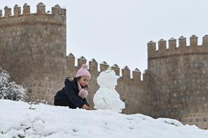 (260118) -- AVILA, 18 enero, 2026 (Xinhua) -- Imagen del 17 de enero de 2026 de una niña disfrutando de la nieve fuera de la antigua muralla de Avila, España. Avila es reconocida como un Sitio Patrimonio de la Humanidad de la UNESCO por sus murallas medievales, construidas en el siglo XI y que se extienden a lo largo de unos 2,5 kilómetros. (Xinhua/Cheng Min) (oa) (ah)