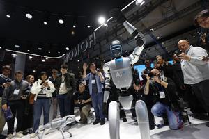 (250304) -- BARCELONA, 4 marzo, 2025 (Xinhua) -- Imagen del 3 de marzo de 2025 de personas observando una demostración de un robot humanoide y un perro robot en el estand de Honor en el Congreso Mundial de Móviles (WMC, por sus siglas en inglés), en Barcelona, España. El MWC se inauguró el lunes reuniendo a líderes, legisladores e innovadores tecnológicos de la industria para explorar los avances en tecnología 5G, inteligencia artificial y conectividad avanzada. Más de 300 empresas chinas muestran sus últimas innovaciones como China Mobile, China Unicom, China Telecom, Huawei, ZTE, Lenovo y Xiaomi. (Xinhua/Zhao Dingzhe) (ah) (vf)