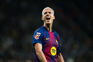 (260104) — BARCELONA, 4 enero, 2026 (Xinhua) — Imagen del 3 de enero de 2026 de Dani Olmo, de Barcelona, festejando su anotación durante el partido de fútbol de La Liga entre RCD Espanyol y FC Barcelona en el RCDE Stadium, en Cornella, Barcelona, España. (Xinhua/Joan Gosa) (ah) (oa) (ce)