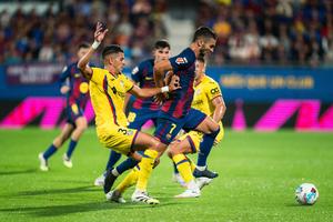 (250922) — BARCELONA, 22 septiembre, 2025 (Xinhua) — Imagen del 21 de septiembre de 2025 de Ferran Torres (d-frente), de FC Barcelona, abriéndose paso durante el partido de fútbol de LaLiga entre FC Barcelona y Getafe CF, en el Estadio Johan Cruyff, en Barcelona, España. (Xinhua/Joan Gosa) (oa) (ah) (vf)