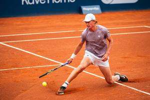 (250416) -- BARCELONA, 16 abril, 2025 (Xinhua) -- Imagen del 15 de abril de 2025 de Ethan Quinn devolviendo la pelota durante el partido de primera ronda del Abierto de Barcelona Banc Sabadell entre Carlos Alcaraz, de España, y Ethan Quinn, de Estados Unidos, en Barcelona, España. (Xinhua/Joan Gosa) (ah) (ra) (ce)