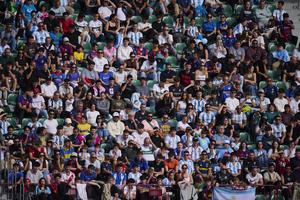 (251114) -- ELCHE, 14 noviembre, 2025 (Xinhua) -- Imagen del 13 de noviembre de 2025 de aficionados observando una sesión de entrenamiento de la selección nacional argentina de fútbol en el Estadio Martínez Valero, en Elche, España. (Xinhua/Str) (oa) (da)