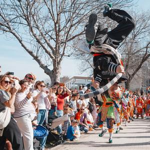 (260223) -- MADRID, 23 febrero, 2026 (Xinhua) -- Imagen del 22 de febrero de 2026 de personas observando una presentación de Yingge durante un desfile para festejar el Año Nuevo chino, en Madrid, España. (Xinhua/Zhang Yuheng) (rtg) (ah) (vf)