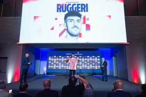 (250731) -- MADRID, 31 julio, 2025 (Xinhua) -- Imagen del 30 de julio de 2025 de Matteo Ruggeri posando para fotografías con su nuevo jersey durante la presentación oficial de Johnny Cardoso y Matteo Ruggeri como nuevos jugadores de Atlético de Madrid, en Madrid, España. (Xinhua/Gustavo Valiente) (rtg) (ra) (vf)