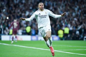 (250220) -- MADRID, 20 febrero, 2025 (Xinhua) -- Imagen del 19 de febrero de 2025 de Kylian Mbappé, de Real Madrid, festejando una anotación durante el partido de fútbol de vuelta de play-off de la fase eliminatoria de la Liga de Campeones de la UEFA entre Real Madrid y Manchester City, en Madrid, España. (Xinhua/Gustavo Valiente) (da) (ra) (vf)