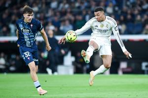 (251208) -- MADRID, 8 diciembre, 2025 (Xinhua) -- Imagen del 7 de diciembre de 2025 de Kylian Mbappe (d), de Real Madrid, disputando el balón con Javi Rodríguez, de Celta de Vigo durante el partido de fútbol de LaLiga entre Real Madrid y Celta de Vigo, celebrado en el estadio Santiago Bernabeu, en Madrid, España. (Xinhua/Gustavo Valiente) (rtg) (ah) (vf)