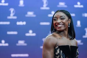 (250422) -- MADRID, 22 abril, 2025 (Xinhua) -- Imagen del 21 de abril de 2025 de Simon Biles, gimnasta de Estados Unidos, posando a su llegada a la ceremonia de los Premios Laureus del Deporte Mundial 2025, en Madrid, España. (Xinhua/Peng Ziyang) (oa) (ah) (ce)