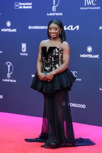 (250422) -- MADRID, 22 abril, 2025 (Xinhua) -- Imagen del 21 de abril de 2025 de Simon Biles, gimnasta de Estados Unidos, posando a su llegada a la ceremonia de los Premios Laureus del Deporte Mundial 2025, en Madrid, España. (Xinhua/Peng Ziyang) (oa) (ah) (ce)