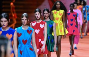 (260320) -- MADRID, 20 marzo, 2026 (Xinhua) -- Modelos presentan creaciones de Agatha Ruiz de la Prada durante la Semana de la Moda Mercedes-Benz, en Madrid, España, el 20 de marzo de 2026. (Xinhua/Cheng Min) (rtg) (ra) (vf)