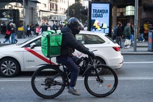 (250129) -- MADRID, 29 enero, 2025 (Xinhua) -- Imagen del 28 de enero de 2025 de un repartidor circulando en una calle, en Madrid, España. España concluyó 2024 con cifras récord de empleo, de acuerdo con la Encuesta de Población Activa (EPA) publicada el martes por la Oficina de Estadística del país. La tasa de desempleo cayó al 10,6 por ciento, la más baja desde el segundo trimestre de 2008, cuando fue del 10,36 por ciento. (Xinhua/Gustavo Valiente) (jg) (da) (vf)