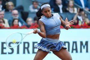(250504) -- MADRID, 4 mayo, 2025 (Xinhua) -- Imagen del 3 de mayo de 2025 de Coco Gauff devolviendo la pelota durante la final de individuales femeninos entre Aryna Sabalenka, de Bielorrusia, y Coco Gauff, de Estados Unidos, en el torneo de tenis Madrid Open, en Madrid, España. (Xinhua/Gustavo Valiente) (oa) (ah)