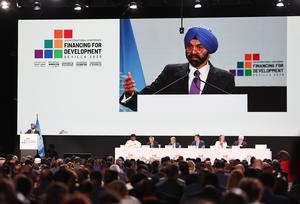 (250630) -- SEVILLA, 30 junio, 2025 (Xinhua) -- El presidente del Grupo del Banco Mundial, Ajay Banga, habla durante la sesión de inauguración de la IV Conferencia Internacional sobre Financiación para el Desarrollo, en Sevilla, España, el 30 de junio de 2025. La IV Conferencia Internacional sobre Financiación para el Desarrollo, centrada en cuestiones de financiación del desarrollo mundial, se celebró desde el lunes y continuará hasta el jueves, con la participación de representantes de gobiernos, organizaciones internacionales, instituciones financieras, comunidades empresariales, entre otros. (Xinhua/Li Jing) (rtg) (oa) (ce)