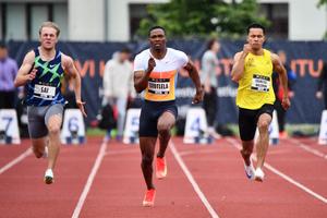 (250622) — JOHVI, 22 junio, 2025 (Xinhua) — Imagen del 21 de junio de 2025 de Henri Sai (i), de Estonia, Gift Leotlela (c), de Sudáfrica y Per-Tinius Fremstad-Waldron, de Noruega, compitiendo durante el evento de 100m masculinos en el Continental Tour 2025 Conmemorativo de Heino Lipp de World Athletics, en Johvi, Estonia. (Xinhua/Sergei Stepanov) (rtg) (da)