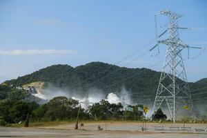 (250909) -- BENISHANGUL-GUMUZ, 9 septiembre, 2025 (Xinhua) -- Imagen del 9 de septiembre de 2025 de las líneas de transmisión de la Gran Presa del Renacimiento Etíope (GERD, por sus siglas en inglés), en la región noroccidental de Benishangul-Gumuz, Etiopía. Etiopía inauguró oficialmente el martes la GERD, el mayor proyecto hidroeléctrico de Africa. (Xinhua/Michael Tewelde) (oa) (ah) (ce)