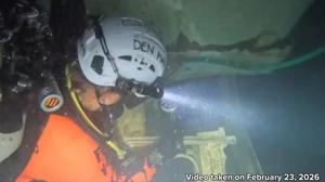 (260224) -- BASILAN, 24 febrero, 2026 (Xinhua) -- Captura de pantalla del 23 de febrero de 2026 de un buzo de la Guardia Costera de Filipinas (GCF), trabajando en las aguas cerca de la isla Baluk-Baluk, en Basilan, Filipinas. La GCF dijo el martes que ha completado la búsqueda submarina completa del ferry de pasajeros MV Trisha Kerstin 3, que se hundió frente a la provincia de Basilan el 26 de enero, dejando al menos 65 personas muertas. (Xinhua/PCG) (oa) (ah) (ce)