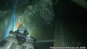 (260224) -- BASILAN, 24 febrero, 2026 (Xinhua) -- Captura de pantalla del 23 de febrero de 2026 de un buzo de la Guardia Costera de Filipinas (GCF), trabajando en las aguas cerca de la isla Baluk-Baluk, en Basilan, Filipinas. La GCF dijo el martes que ha completado la búsqueda submarina completa del ferry de pasajeros MV Trisha Kerstin 3, que se hundió frente a la provincia de Basilan el 26 de enero, dejando al menos 65 personas muertas. (Xinhua/PCG) (oa) (ah) (ce)