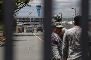 (250311) -- CIUDAD DE PASAY, 11 marzo, 2025 (Xinhua) -- Soldados se reúnen para asegurar el área donde el expresidente filipino, Rodrigo Duterte se encuentra detenido en la base aérea de Villamor, en la Ciudad de Pasay, Metro Manila, Filipinas, el 11 de marzo de 2025. La Oficina de Comunicaciones Presidenciales (PCO, siglas en inglés) de Filipinas publicó un comunicado el martes confirmando que el expresidente Rodrigo Duterte fue detenido al regresar a Manila desde el extranjero. (Xinhua/Str) (ah) (vf)
