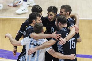(250914) -- CIUDAD DE PASAY, 14 septiembre, 2025 (Xinhua) -- Jugadores de Argentina, festejan un punto durante el partido del grupo C entre Finlandia y Argentina, en el Campeonato Mundial Masculino de la FIVB 2025, en la Ciudad de Pasay, Filipinas, el 14 de septiembre de 2025. (Xinhua/Rouelle Umali) (rtg) (ah)
