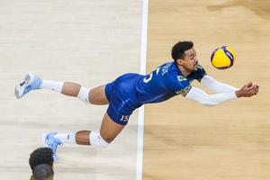 (250914) -- CIUDAD DE PASAY, 14 septiembre, 2025 (Xinhua) -- Maique Reis Nascimiento, de Brasil compite durante el partido del grupo H entre China y Brasil, en el Campeonato Mundial Masculino de la FIVB 2025, en la Ciudad de Pasay, Filipinas, el 14 de septiembre de 2025. (Xinhua/Rouelle Umali) (rtg) (ah)