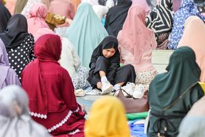 (250606) -- CIUDAD QUEZON, 6 junio, 2025 (Xinhua) -- Una niña se coloca sus zapatos durante la celebración de Eid al-Adha, en Ciudad Quezon, Filipinas, el 6 de junio de 2025. (Xinhua/Rouelle Umali) (oa) (ra) (vf)