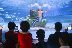 (250128) -- MANILA, 28 enero, 2025 (Xinhua) -- Personas observan un espectáculo de sirenas previo a la Fiesta de la Primavera en el Parque Oceánico de Manila, en Manila, Filipinas, el 28 de enero de 2025. (Xinhua/Rouelle Umali) (oa) (ah) (ce)