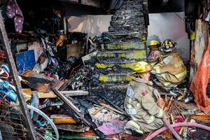 (250806) -- MANILA, 6 agosto, 2025 (Xinhua) -- Bomberos son vistos en el sitio de un gran incendio que afectó una zona marginal, en Manila, Filipinas, el 6 de agosto de 2025. Alrededor de 1.500 familias se vieron afectadas por el incendio según la Oficina de Protección contra Incendios de Filipinas. (Xinhua/Rouelle Umali) (ah) (ra) (ce)