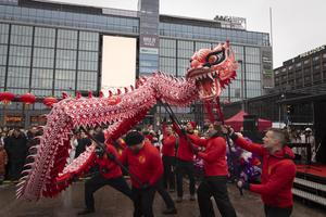 (250123) -- HELSINKI, 23 enero, 2025 (Xinhua) -- Imagen del 22 de enero de 2025 de bailarines de la danza del león realizando una presentación durante un evento cultural chino para celebrar el próximo Festival de Primavera chino, en Helsinki, Finlandia. El evento cultural que presentó una variedad de muestras culturales chinas, incluida la gastronomía china y el patrimonio cultural inmaterial, se llevó a cabo aquí el miércoles. (Xinhua/Matti Matikainen) (jg) (ah) (ce)