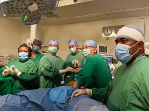 (251009) -- SUVA, 9 octubre, 2025 (Xinhua) -- Imagen del 6 de octubre de 2025 de médicos chinos del buque hospital naval chino "Arca de la Ruta de la Seda" y médicos locales realizando una cirugía a un paciente en un hospital local, en Suva, Fiyi. El buque hospital naval chino "Arca de la Ruta de la Seda", que está llevando a cabo la Misión Armonía-2025, completó satisfactoriamente una visita amistosa y una misión de servicio médico humanitario de siete días a Fiyi y zarpó para Tonga el miércoles. (Xinhua/Cui Xiaoyang) (rtg) (ra) (vf)