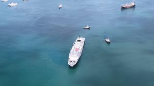 (251009) — SUVA, 9 octubre, 2025 (Xinhua) — Imagen del 8 de octubre de 2025 del buque hospital naval chino «Arca de la Ruta de la Seda» realizando un simulacro conjunto de búsqueda y rescate marítimo con la Armada de Fiyi, en las aguas cerca de Fiyi. El buque hospital naval chino «Arca de la Ruta de la Seda», que está llevando a cabo la Misión Armonía-2025, completó satisfactoriamente una visita amistosa y una misión de servicio médico humanitario de siete días a Fiyi y zarpó para Tonga el miércoles. (Xinhua/Wang Junchuan) (rtg) (ra) (vf)