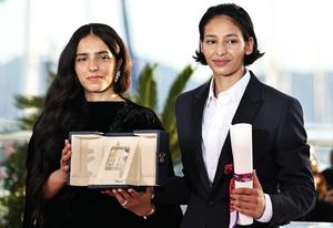 (250525) -- CANNES, 25 mayo, 2025 (Xinhua) -- Imagen del 24 de mayo de 2025 de la actriz francesa, Nadia Melliti (d) y la directora, Hafsia Herzi, posando en una sesión fotográfica durante la ceremonia de clausura de la 78ª edición del Festival de Cine de Cannes, en Cannes, en el sur de Francia. Nadia Melliti ganó el Premio a Mejor Actriz por su participación en la película "La Petite derniere" (La Hermana Pequeña). (Xinhua/Gao Jing) (rtg) (da)