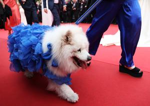 (250520) -- CANNES, 20 mayo, 2025 (Xinhua) -- Imagen del 19 de mayo de 2025 de un perro disfrazado llegando a la proyección de la película "Highest 2 Lowest" en la 78 edición del Festival de Cine de Cannes, en Cannes, en el sur de Francia. (Xinhua/Gao Jing) (oa) (ah) (vf)