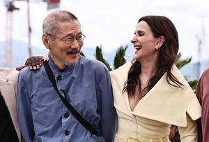 (250514) -- CANNES, 14 mayo, 2025 (Xinhua) -- Imagen del 13 de mayo de 2025 de la actriz francesa y presidenta del jurado del 78 Festival de Cine de Cannes, Juliette Binoche (d), posando con el director de cine de República de Corea, Hong Sang-Soo, también miembro del jurado, durante una sesión fotográfica en el festival, en Cannes, Francia. (Xinhua/Gao Jing) (ah) (ra) (vf)
