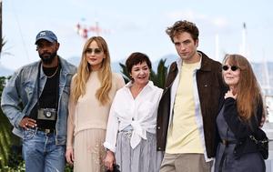 (250518) -- CANNES, 18 mayo, 2025 (Xinhua) -- La directora británica, Lynne Ramsay (c), posa junto a miembros del elenco durante una sesión fotográfica para la película "Die, My Love" en la 78 edición del Festival de Cine de Cannes, en Cannes, en el sur de Francia, el 18 de mayo de 2025. (Xinhua/Gao Jing) (rtg) (ah)
