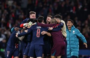 (250508) -- PARIS, 8 mayo, 2025 (Xinhua) -- Imagen del 7 de mayo de 2025 de jugadores de Paris Saint-Germain festejando el avance a la final luego de ganar el partido de la semifinal de vuelta de la Liga de Campeones de la UEFA entre Paris Saint-Germain y Arsenal en el estadio Parc des Princes, en París, Francia. (Xinhua/Gao Jing) (da) (ra) (vf)