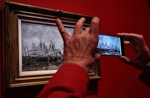(250409) -- PARIS, 9 abril, 2025 (Xinhua) -- Imagen del 8 de abril de 2025 de una persona tomando una fotografía de un cuadro durante una visita de la prensa a la exposición "Eugene Boudin, padre del Impresionismo", en el Museo Marmottan-Monet, en París, Francia. La exposición estará abierta al público del 9 de abril al 31 de agosto. (Xinhua/Gao Jing) (jg) (da) (ce)