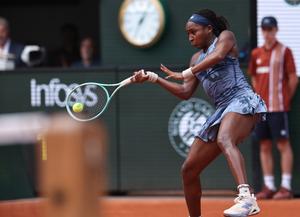 (250601) -- PARÍS, 1 junio, 2025 (Xinhua) -- Imagen del 31 de mayo de 2025 de Coco Gauff devolviendo la pelota durante el partido de la cuarta ronda de individuales femeninos entre Marie Bouzkova, de la República Checa, y Coco Gauff, de Estados Unidos, en el torneo de tenis Abierto de Francia, en Roland Garros, en París, Francia. (Xinhua/Li Jing) (oa) (rtg) (da)