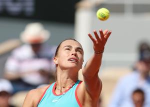 (250603) -- PARÍS, 3 junio, 2025 (Xinhua) -- Aryna Sabalenka sirve la pelota durante los cuartos de final de individuales femeninos entre Zheng Qinwen, de China, y Aryna Sabalenka, de Bielorrusia, en el torneo de tenis Abierto de Francia, en Roland Garros, en París, Francia, el 3 de junio de 2025. (Xinhua/Gao Jing) (oa) (ra) (vf)