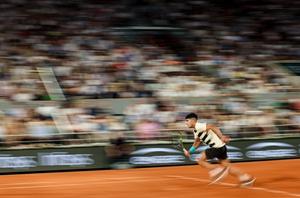 (250531) -- PARIS, 31 mayo, 2025 (Xinhua) -- Imagen del 30 de mayo de 2025 de Carlos Alcaraz, de España, compitiendo durante el partido de tercera ronda de individuales masculinos ante Damir Dzumhur, de Bosnia y Herzegovina, en el torneo de tenis Abierto de Francia, en Roland Garros, en París, Francia. (Xinhua/Li Jing) (rtg) (da)