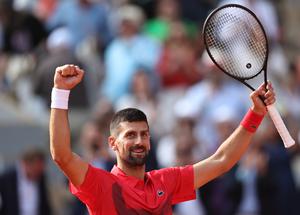 (250603) -- PARíS, 3 junio, 2025 (Xinhua) -- Imagen del 2 de junio de 2025 de Novak Djokovic, de Serbia, festejando la victoria ante Cameron Norrie, de Reino Unido, al término del partido de cuarta ronda de individuales masculinos en el torneo de tenis Abierto de Francia, en Roland Garros, en París, Francia. (Xinhua/Li Jing) (oa) (ra) (vf)