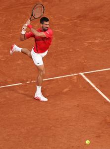 (250601) -- PARÍS, 1 junio, 2025 (Xinhua) -- Imagen del 31 de mayo de 2025 de Novak Djokovic devolviendo la pelota durante el partido de tercera ronda de individuales masculinos entre Filip Misolic, de Austria, y Novak Djokovic, de Serbia, en el torneo de tenis Abierto de Francia, en Roland Garros, en París, Francia. (Xinhua/Li Jing) (oa) (rtg) (da)