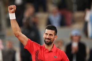 (250528) -- PARIS, 28 mayo, 2025 (Xinhua) -- Imagen del 27 de mayo de 2025 de Novak Djokovic festejando después de ganar el partido de primera ronda de individuales masculinos entre Mackenzie Mcdonald, de Estados Unidos, y Novak Djokovic, de Serbia, en el torneo de tenis Abierto de Francia, en Roland Garros, en París, Francia. (Xinhua/Li Jing) (ah) (ra) (vf)