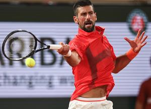 (250528) -- PARIS, 28 mayo, 2025 (Xinhua) -- Imagen del 27 de mayo de 2025 de Novak Djokovic devolviendo la pelota durante el partido de primera ronda de individuales masculinos entre Mackenzie Mcdonald, de Estados Unidos, y Novak Djokovic, de Serbia, en el torneo de tenis Abierto de Francia, en Roland Garros, en París, Francia. (Xinhua/Li Jing) (ah) (ra) (vf)