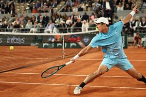 (250528) -- PARIS, 28 mayo, 2025 (Xinhua) -- Imagen del 27 de mayo de 2025 de Mackenzie Mcdonald devolviendo la pelota durante el partido de primera ronda de individuales masculinos entre Mackenzie Mcdonald, de Estados Unidos, y Novak Djokovic, de Serbia, en el torneo de tenis Abierto de Francia, en Roland Garros, en París, Francia. (Xinhua/Li Jing) (ah) (ra) (vf)