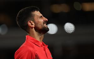 (250605) -- PARIS, 5 junio, 2025 (Xinhua) -- Imagen del 4 de junio de 2025 de Novak Djokovic festejando un punto durante el partido de cuartos de final de individuales masculinos entre Alexander Zverev, de Alemania, y Novak Djokovic, de Serbia, en el torneo de tenis Abierto de Francia, en Roland Garros, en París, Francia. (Xinhua/Li Jing) (rtg) (ra) (ce)